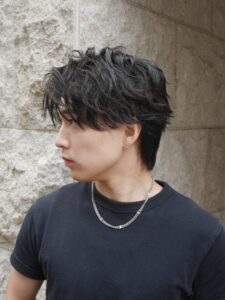 おすすめのスタイリング剤:軽めのミルクワックスやバーム系ワックスが◎。自然な束感とツヤを出しながら、パサつきを防いで柔らかな質感に仕上がります。ドライ後に手のひらでワックスを伸ばし、毛先を軽く握るようにセットするのがポイント。