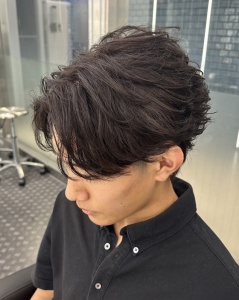 シャドウパーマとは、強いカール感を出さずに、影(シャドウ)のような立体感・動き・毛流れをつくるパーマのことです。 特徴 くっきりしたウェーブではなく自然な動き 根元〜中間にかけてボリュームと奥行きが出る セットしなくても無造作感・色気が出やすい ビジネスシーンでも派手になりにくい こんな方におすすめ 直毛で動きが出にくい方 セットを楽にしたい方 強いパーマは苦手だけど雰囲気を変えたい方 韓国風・ナチュラル系スタイルが好きな方 セット方法 ドライだけでも形が出やすい ワックスやバームを軽くなじませるだけでOK 濡れ感を出すとより立体的に見える よくある組み合わせ シャドウパーマ × センターパート シャドウパーマ × マッシュ シャドウパーマ × フェード